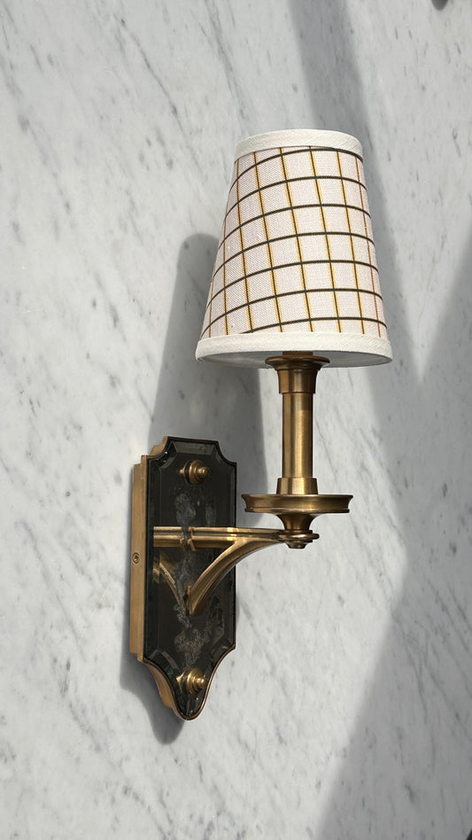 Pair of Thomas O'Brian Mirrored Wall Sconces with Custom Shades