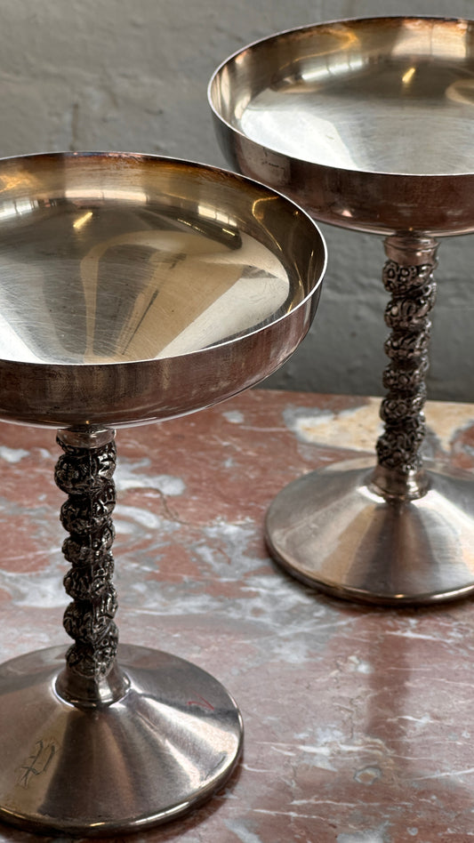 Vintage Etched Brass Clawfoot Sugar Cube Tongs with Attached Serving Bell