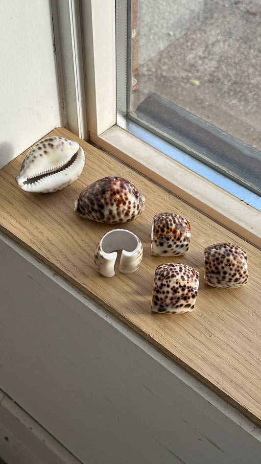 Set of 4 Tiger Cowrie Shell Napkin Rings and 2 Shells