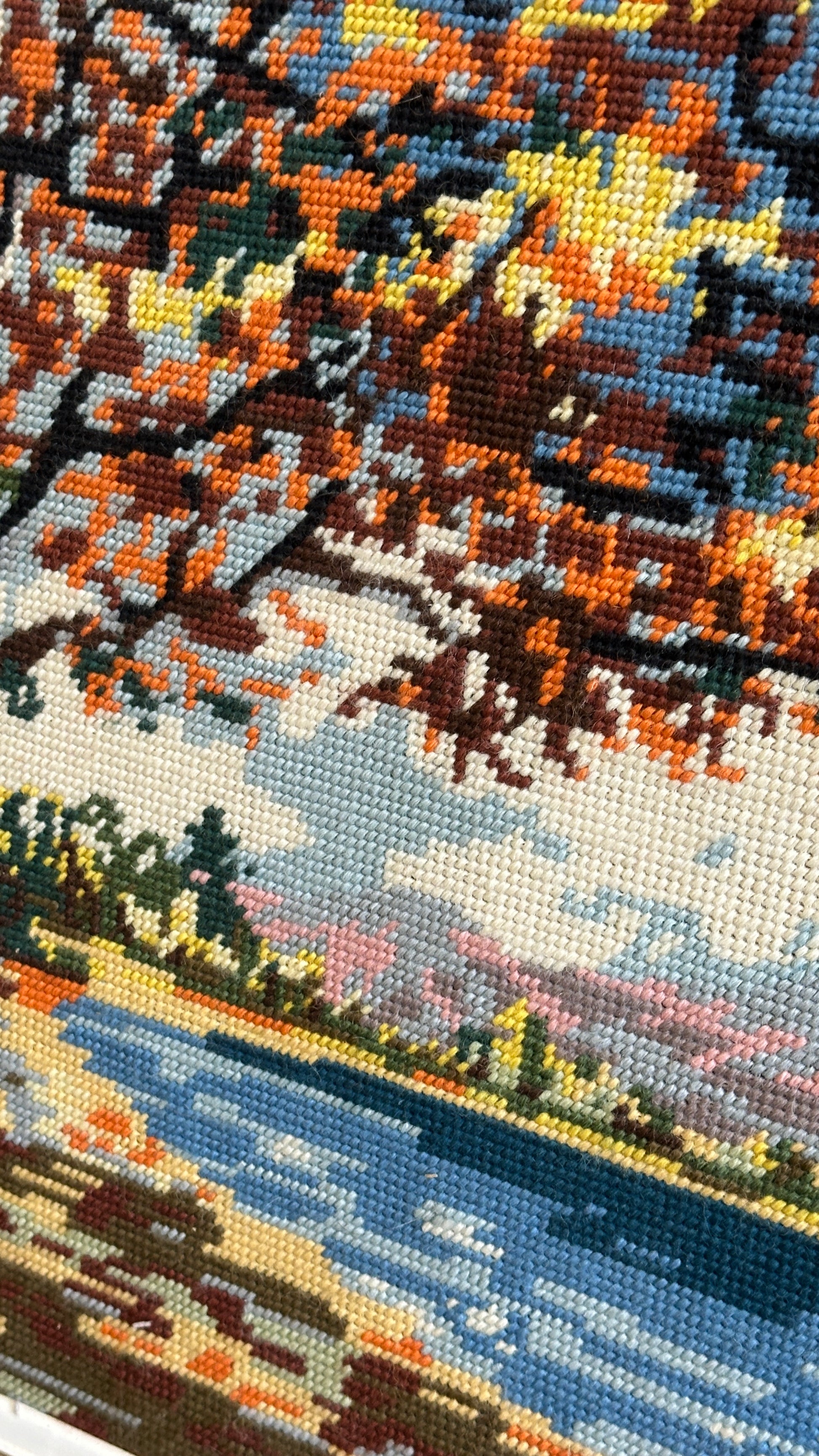 Framed Needlepoint Landscape