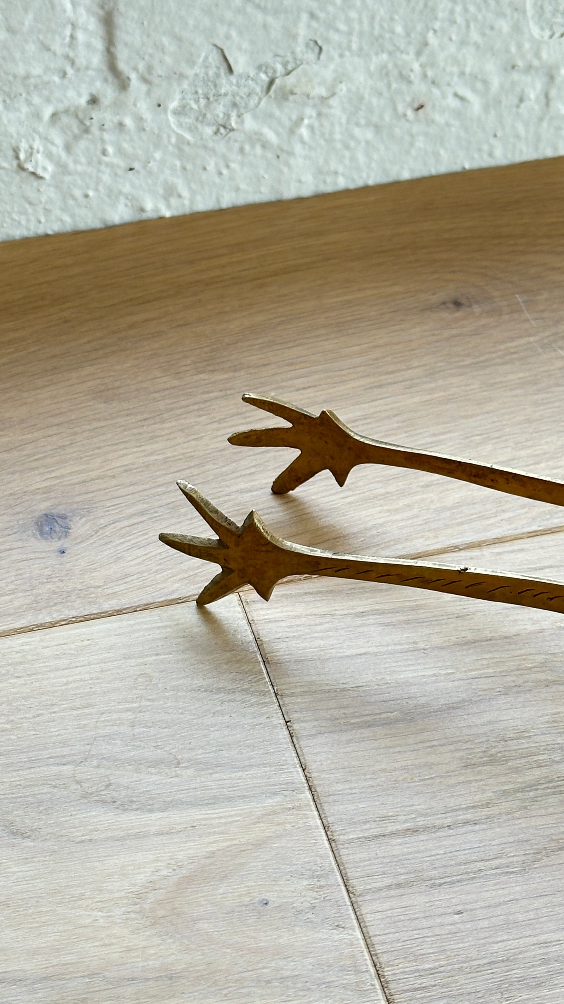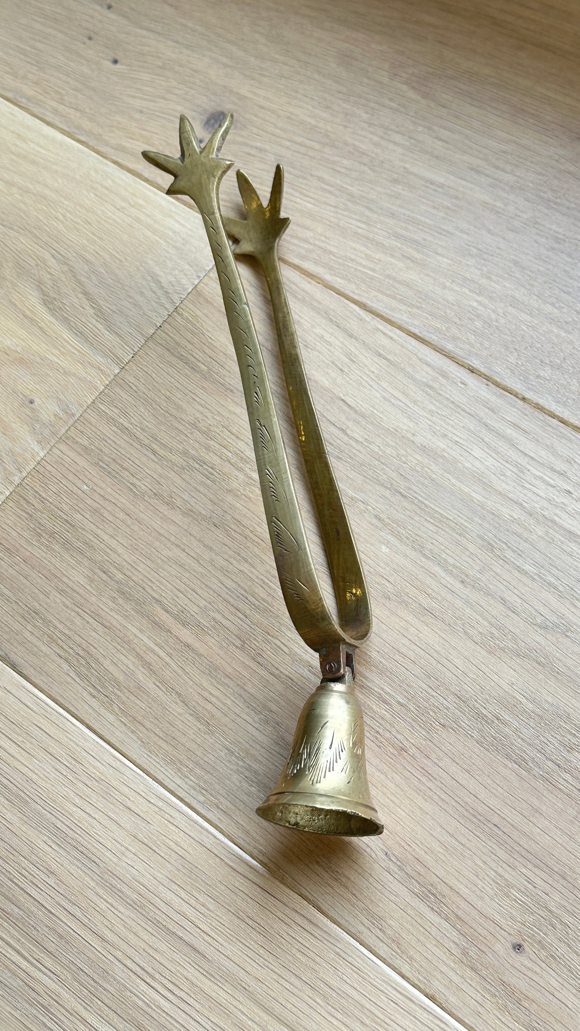 Vintage Etched Brass Clawfoot Sugar Cube Tongs with Attached Serving Bell